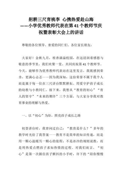 【七哥公文】2025年:躬耕三尺育桃李 心携热爱赴山海 ——小学优秀教师代表在第41个教师节庆祝暨表彰大会上的讲话+更多免费公文+VX:QiGeGongWen2024