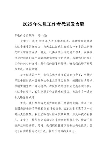 / 【七哥公文】2025年:2025年先进工作者代表发言稿+更多免费公文+VX:QiGeGongWen2024