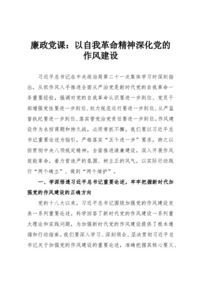 / 【七哥公文】2025年:廉政党课:以自我革命精神深化党的作风建设+更多免费公文+VX:QiGeGongWen2024