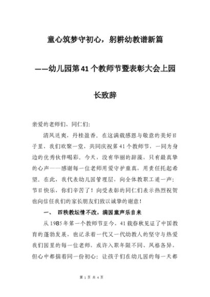 【七哥公文】2025年:幼儿园第41个教师节暨表彰大会上园长致辞:童心筑梦守初心,躬耕幼教谱新篇+更多免费公文+VX:QiGeGongWen2024