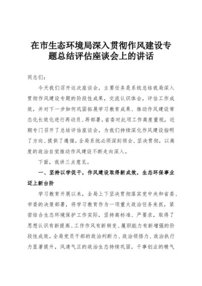 【七哥公文】2025年:在市生态环境局深入贯彻作风建设专题总结评估座谈会上的讲话+更多免费公文+VX:QiGeGongWen2024