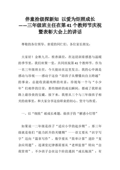 【七哥公文】2025年:伴童拾级探新知 以爱为炬照成长 ——三年级班主任在第41个教师节庆祝暨表彰大会上的讲话+更多免费公文+VX:QiGeGongWen2024