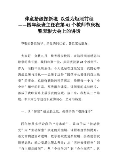 【七哥公文】2025年:伴童拾级探新境 以爱为炬照前程 ——四年级班主任在第41个教师节庆祝暨表彰大会上的讲话+更多免费公文+VX:QiGeGongWen2024