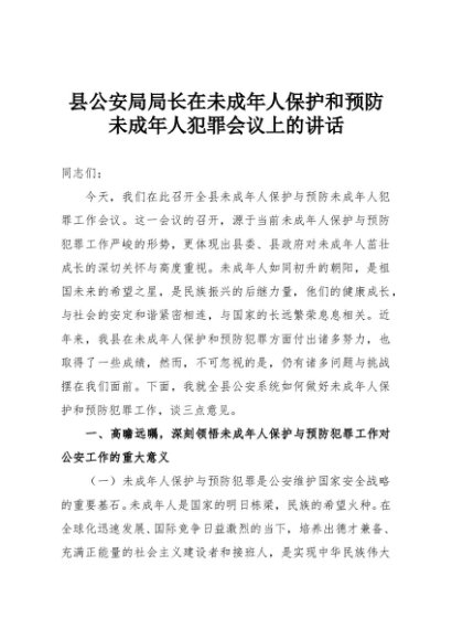 【七哥公文】2025年:县公安局局长在未成年人保护和预防未成年人犯罪会议上的讲话+更多免费公文+VX:QiGeGongWen2024