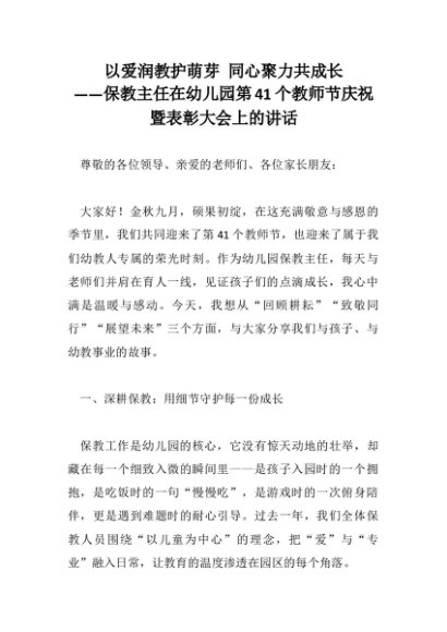 【七哥公文】2025年:以爱润教护萌芽 同心聚力共成长 ——保教主任在幼儿园第41个教师节庆祝暨表彰大会上的讲话+更多免费公文+VX:QiGeGongWen2024