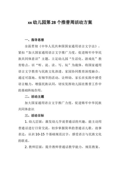 / 【七哥公文】2025年:xx幼儿园第28个推普周活动方案+更多免费公文+VX:QiGeGongWen2024