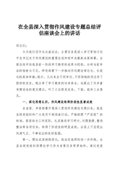 / 【七哥公文】2025年:在全县深入贯彻作风建设专题总结评估座谈会上的讲话+更多免费公文+VX:QiGeGongWen2024