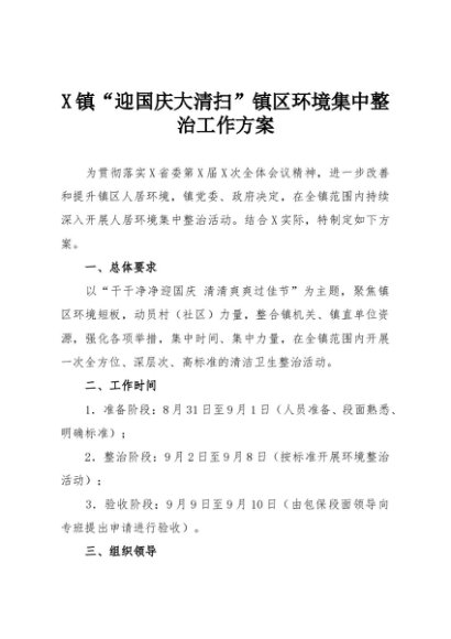 / 【七哥公文】2025年:X镇“迎国庆大清扫”镇区环境集中整治工作方案+更多免费公文+VX:QiGeGongWen2024