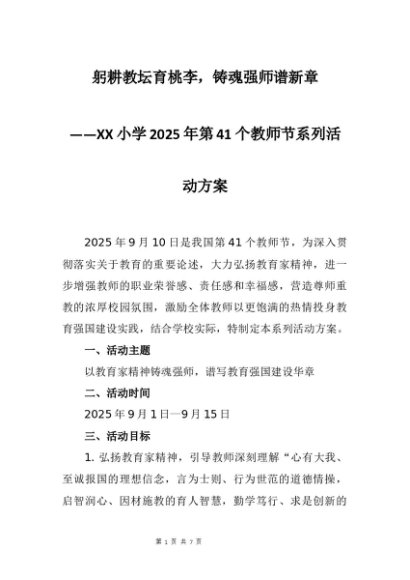 【七哥公文】2025年:XX小学2025年第41个教师节系列活动方案:躬耕教坛育桃李,铸魂强师谱新章+更多免费公文+VX:QiGeGongWen2024