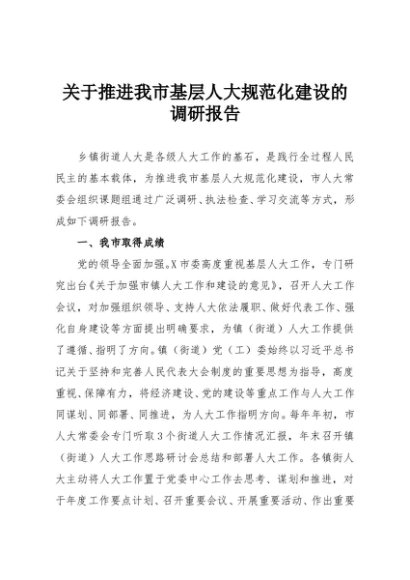 / 【七哥公文】2025年:关于推进我市基层人大规范化建设的调研报告+更多免费公文+VX:QiGeGongWen2024