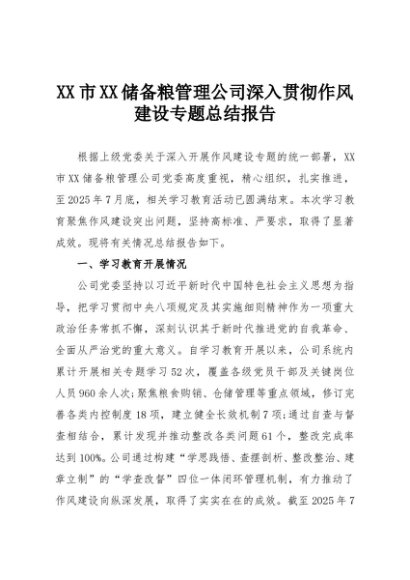 / 【七哥公文】2025年:XX市XX储备粮管理公司深入贯彻作风建设专题总结报告+更多免费公文+VX:QiGeGongWen2024