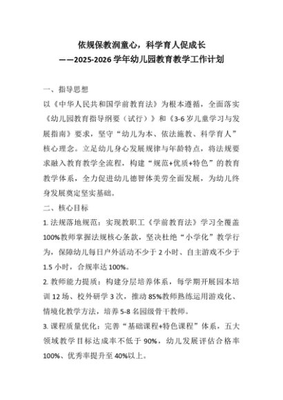【七哥公文】2025年:依规保教润童心,科学育人促成长——2025-2026学年幼儿园教育教学工作计划+更多免费公文+VX:QiGeGongWen2024
