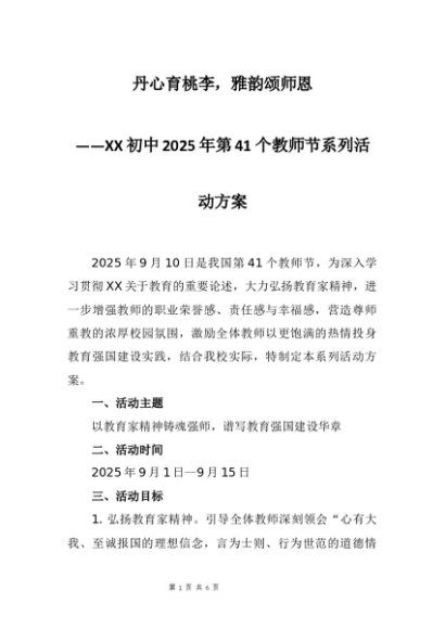 【七哥公文】2025年:XX初中2025年第41个教师节系列活动方案:丹心育桃李,雅韵颂师恩+更多免费公文+VX:QiGeGongWen2024