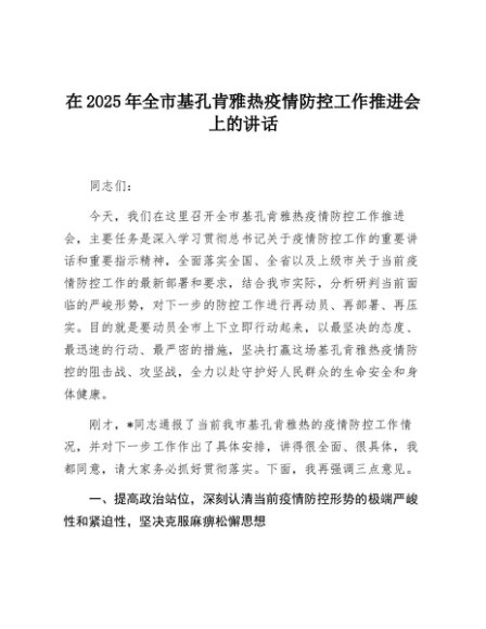【七哥公文】2025年:在2025年全市基孔肯雅热疫情防控工作推进会上的讲话+更多免费公文+VX:QiGeGongWen2024