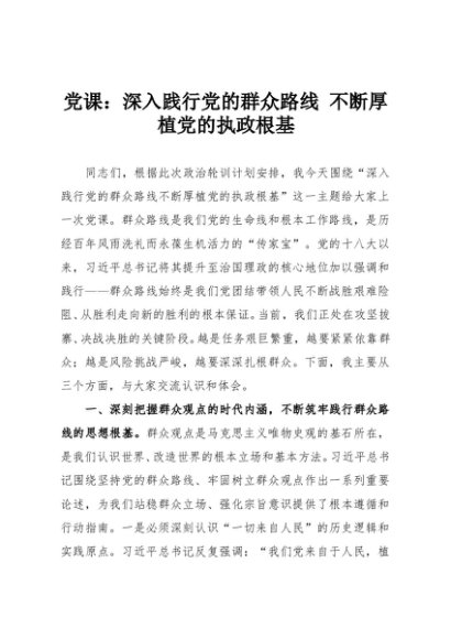 / 【七哥公文】2025年:党课:深入践行党的群众路线 不断厚植党的执政根基+更多免费公文+VX:QiGeGongWen2024