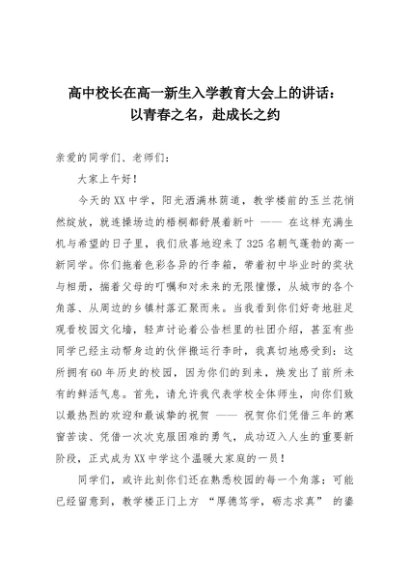 【七哥公文】2025年:高中校长在高一新生入学教育大会上的讲话:以青春之名,赴成长之约+更多免费公文+VX:QiGeGongWen2024