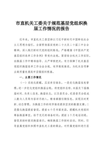 / 【七哥公文】2025年:市直机关工委关于规范基层党组织换届工作情况的报告+更多免费公文+VX:QiGeGongWen2024