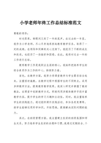 【七哥公文】2025年:小学老师年终工作总结标准范文+更多免费公文+VX:QiGeGongWen2024