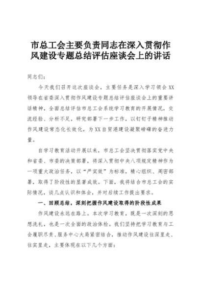 【七哥公文】2025年:市总工会主要负责同志在深入贯彻作风建设专题总结评估座谈会上的讲话+更多免费公文+VX:QiGeGongWen2024