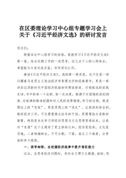 【七哥公文】2025年:在区委理论学习中心组专题学习会上关于《习近平经济文选》的研讨发言+更多免费公文+VX:QiGeGongWen2024