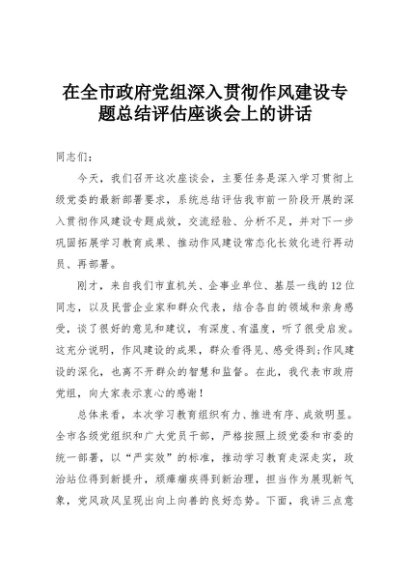 【七哥公文】2025年:在全市政府党组深入贯彻作风建设专题总结评估座谈会上的讲话+更多免费公文+VX:QiGeGongWen2024