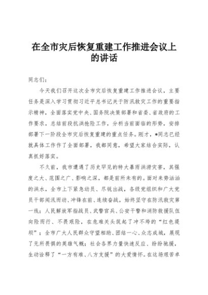 / 【七哥公文】2025年:在全市灾后恢复重建工作推进会议上的讲话+更多免费公文+VX:QiGeGongWen2024