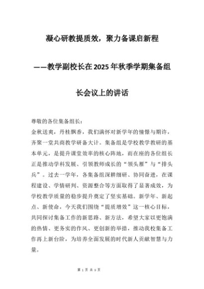 【七哥公文】2025年:教学副校长在2025年秋季学期集备组长会议上的讲话:凝心研教提质效,聚力备课启新程+更多免费公文+VX:QiGeGongWen2024