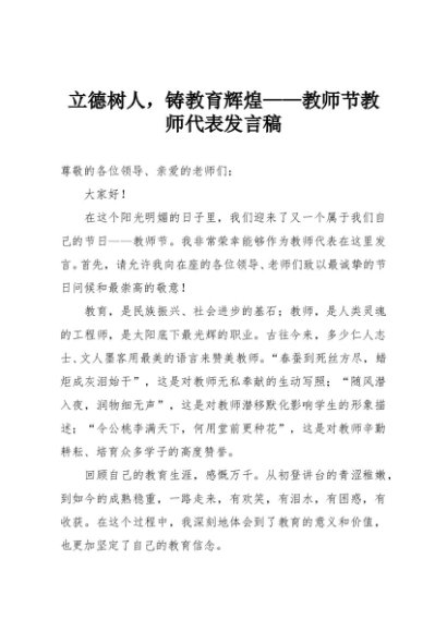 / 【七哥公文】2025年:立德树人,铸教育辉煌——教师节教师代表发言稿+更多免费公文+VX:QiGeGongWen2024