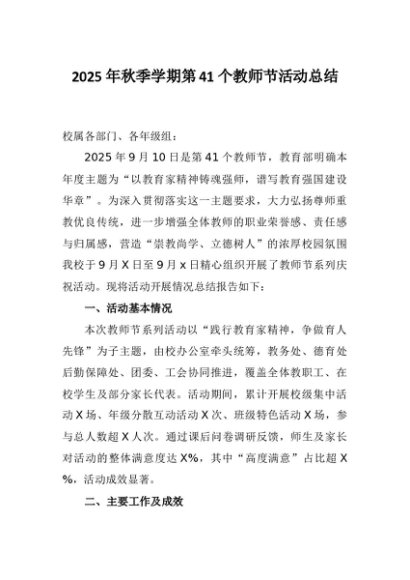/ 【七哥公文】2025年:2025年秋季学期第41个教师节活动总结+更多免费公文+VX:QiGeGongWen2024