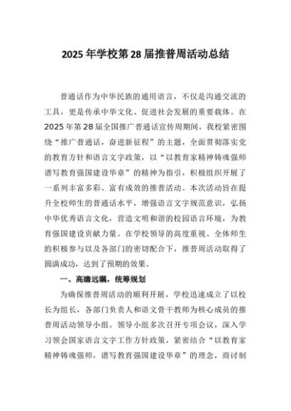【七哥公文】2025年:2025年学校第28届推普周活动总结+更多免费公文+VX:QiGeGongWen2024