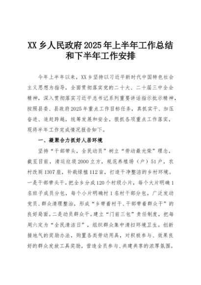 【七哥公文】2025年:XX乡人民政府2025年上半年工作总结和下半年工作安排+更多免费公文+VX:QiGeGongWen2024
