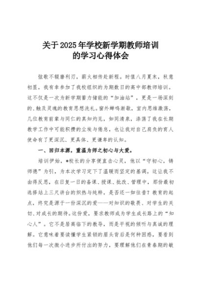 【七哥公文】2025年:关于2025年学校新学期教师培训的学习心得体会+更多免费公文+VX:QiGeGongWen2024