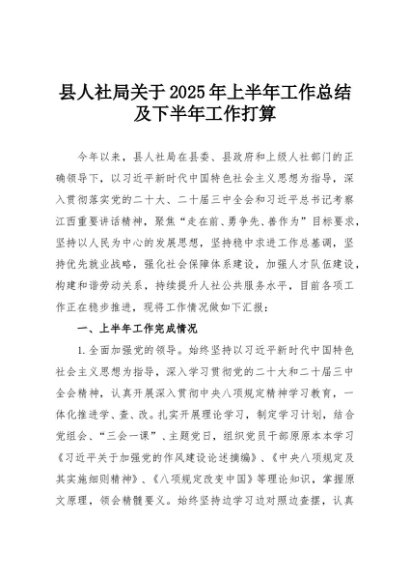 【七哥公文】2025年:县人社局关于2025年上半年工作总结及下半年工作打算+更多免费公文+VX:QiGeGongWen2024