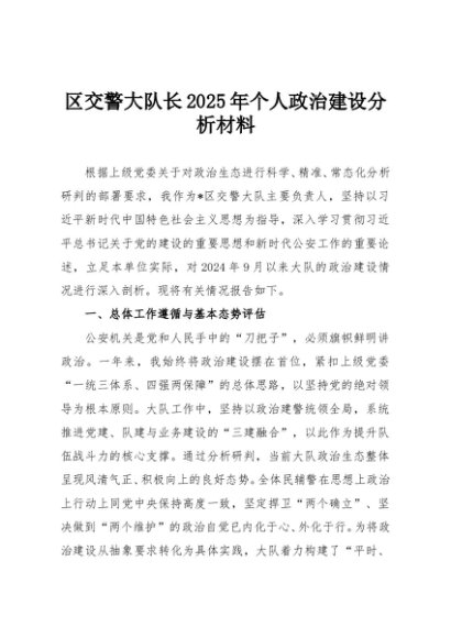 【七哥公文】2025年:区交警大队长2025年个人政治建设分析材料+更多免费公文+VX:QiGeGongWen2024