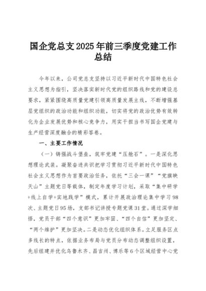 / 【七哥公文】2025年:国企党总支2025年前三季度党建工作总结+更多免费公文+VX:QiGeGongWen2024