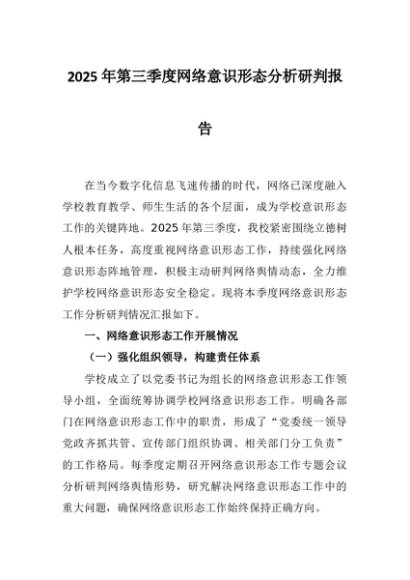 / 【七哥公文】2025年:2025年第三季度网络意识形态分析研判报告+更多免费公文+VX:QiGeGongWen2024