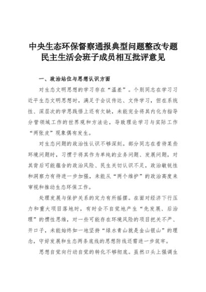 【七哥公文】2025年:中央生态环保督察通报典型问题整改专题民主生活会班子成员相互批评意见+更多免费公文+VX:QiGeGongWen2024