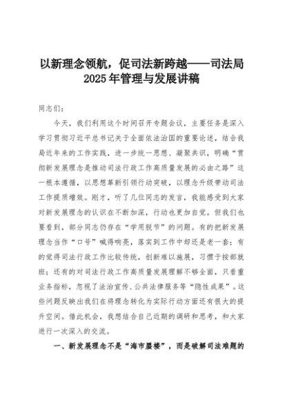 【七哥公文】2025年:以新理念领航,促司法新跨越——司法局2025年管理与发展讲稿+更多免费公文+VX:QiGeGongWen2024