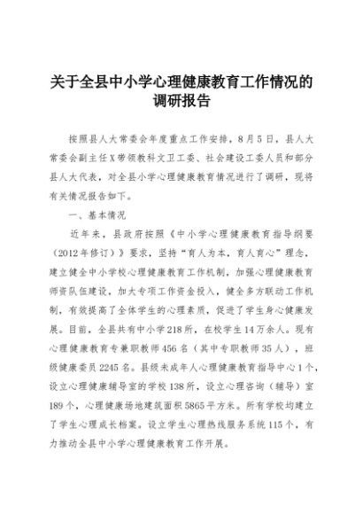 / 【七哥公文】2025年:关于全县中小学心理健康教育工作情况的调研报告+更多免费公文+VX:QiGeGongWen2024