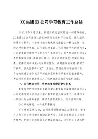 / 【七哥公文】2025年:XX集团XX公司学习教育工作总结+更多免费公文+VX:QiGeGongWen2024