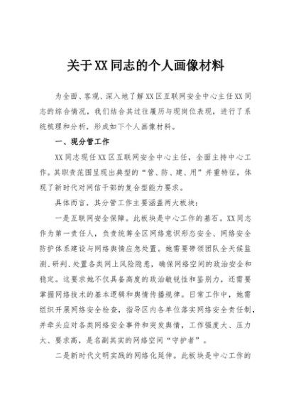 【七哥公文】2025年:关于XX同志的个人画像材料+更多免费公文+VX:QiGeGongWen2024