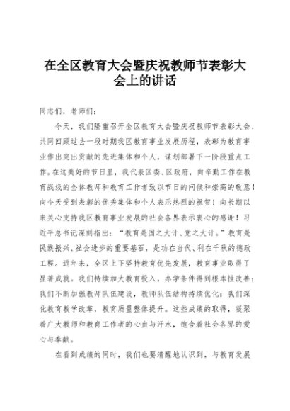 / 【七哥公文】2025年:在全区教育大会暨庆祝教师节表彰大会上的讲话+更多免费公文+VX:QiGeGongWen2024