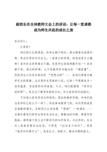 【七哥公文】2025年:副校长在全体教师大会上的讲话:让每一堂课都成为师生共赴的成长之旅+更多免费公文+VX:QiGeGongWen2024