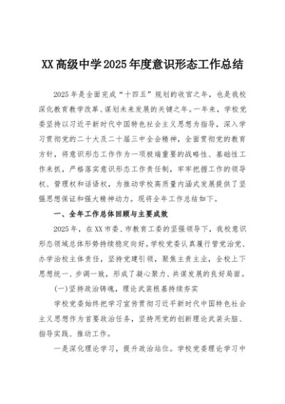 / 【七哥公文】2025年:XX高级中学2025年度意识形态工作总结+更多免费公文+VX:QiGeGongWen2024