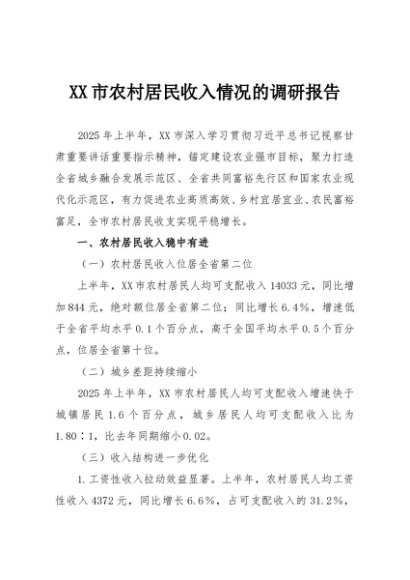 / 【七哥公文】2025年:XX市农村居民收入情况的调研报告+更多免费公文+VX:QiGeGongWen2024