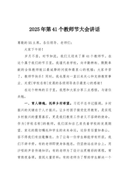 / 【七哥公文】2025年:第41个教师节大会讲话+更多免费公文+VX:QiGeGongWen2024