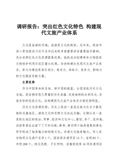 / 【七哥公文】2025年:调研报告:突出红色文化特色 构建现代文旅产业体系+更多免费公文+VX:QiGeGongWen2024