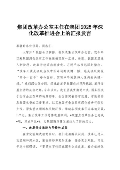 【七哥公文】2025年:集团改革办公室主任在集团2025年深化改革推进会上的汇报发言+更多免费公文+VX:QiGeGongWen2024