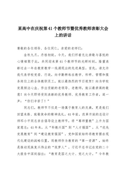 【七哥公文】2025年:某高中在庆祝第41个教师节暨优秀教师表彰大会上的讲话+更多免费公文+VX:QiGeGongWen2024
