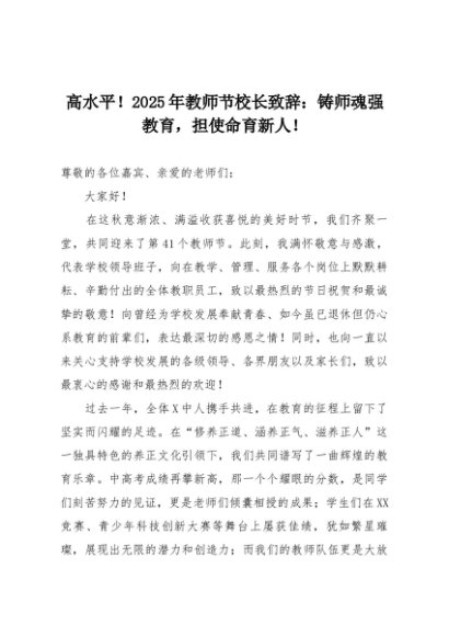 【七哥公文】2025年:高水平!2025年教师节校长致辞:铸师魂强教育,担使命育新人!+更多免费公文+VX:QiGeGongWen2024